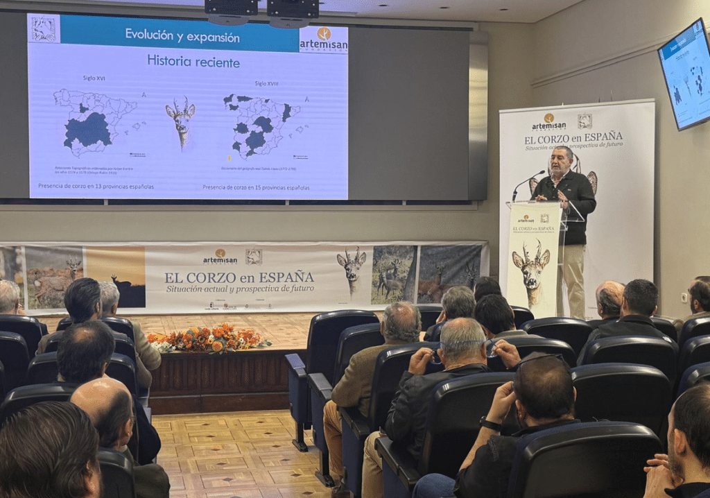 Durante la jornada, el investigador de Fundación Artemisan Gonzalo Varas dejó una de las frases que más titulares va a dar en los próximos años, porque apunta directamente al mapa: «El corzo se está expandiendo desde Burgos y Soria hacia Teruel Zaragoza y cuenca. Eso es lo que muestran los datos. Por lo que estoy seguro que los próximos corzos grandes se cazarán en Valencia. El rumbo sureste es claro».